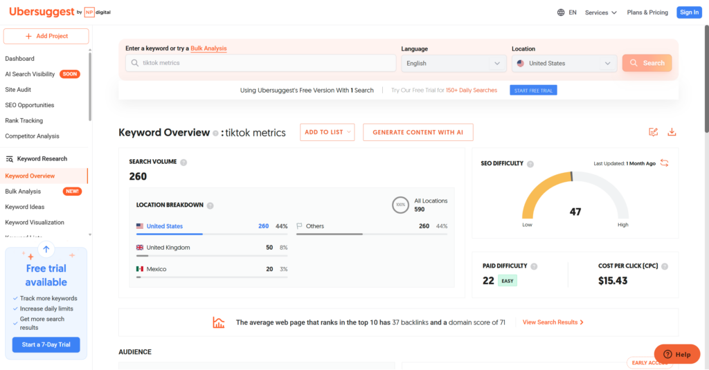 If you’re not getting keyword ideas, type your main service into Google and scroll to “People Also Ask” and “Related Searches” at the bottom. These are real user queries. If you can afford $29/month, Ubersuggest gives you unlimited searches and shows keyword difficulty.